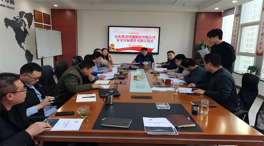 会议由公司安全生产部组织,公司领导班子及各部门负责人参加。尚瑞董事长宣读《山东2007so太阳集团安全生产承诺书》并带头在承诺书上签字,窦大河总监宣读《山东奥美安全生产目标管理责任书》相关内容,强调公司安全、环保、职业卫生否决指标,工作要求,奖惩办法。马总和李总以及各部门负责人签订责任书。