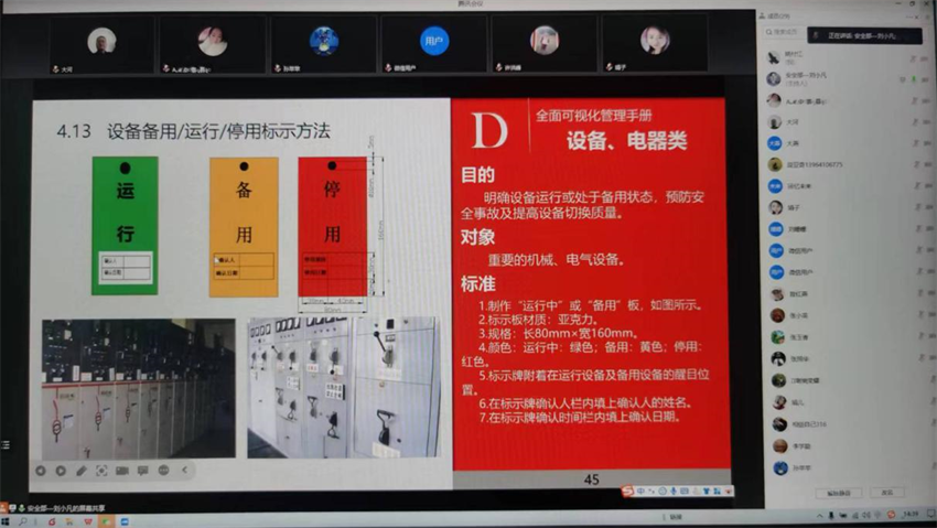 为切实做好常态化疫情防控工作,确保公司各项工作有序开展,11月25日下午14:00,我司通过“腾讯会议”召开2022年6S安全生产管理工作线上会议,安排公司下一步标准化生产、管理的各项工作。会议由安全部刘小凡主持,公司董事长窦大河、总经理姚付江、总监李学勤及办公室、车间生产人员参加。